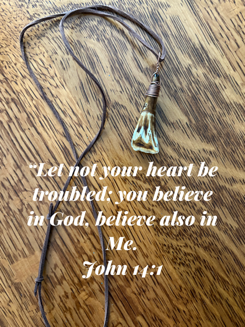 Before he left, he gave me a wire wrapped buffalo tooth on a leather necklace that he had been wearing. He told me that sometimes, when he is anxious at night, he just rubs the wire wrapped petrified wood he had around his neck and that was very calming. I told him that prayer does that for me so I would pray every time I looked at the buffalo tooth. I told him prayer is very powerful. He smiled and I gave him my phone number. I hope he will text me so I can encourage him to seek a relationship with Jesus. I pray he finds the peace he is looking for. And I am confident that he WILL find that peace because he is genuinely looking for it.